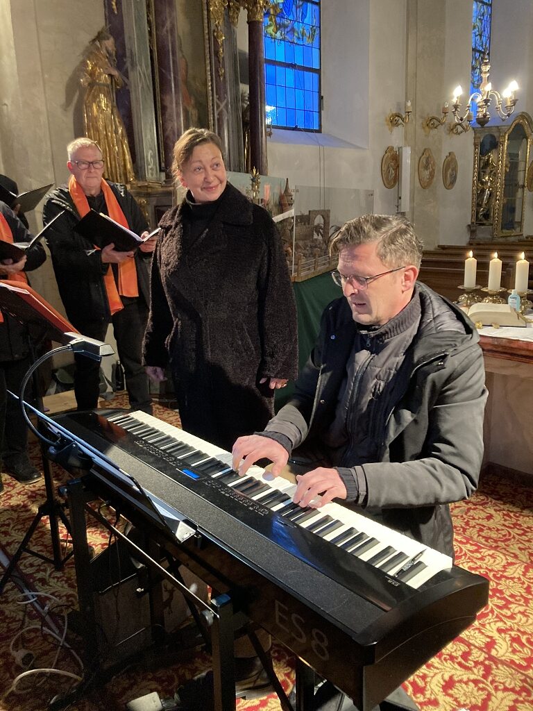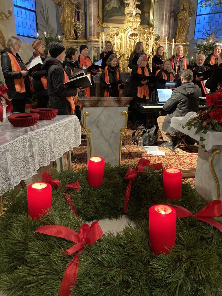 Schon am Wochenende darauf erfolgte der nächste stimmliche Einsatz: Mit der Adventmesse am Sonntag 22. Dezember um 9.30 Uhr in der Pfarrkirche Obsteig beendeten wir uns Chorjahr 2024. In der Pause zwischen Einsingen und Messe durften wir wieder bei Luise und Toni Riser einkehren und uns beim Tee und Gebäck aufwärmen. Die Messe wurde diesmal erstmals vom neuen Pfarrer Sylvain zelebriert. Danach ließen wir den Vormittag im Gasthof Stern ausklingen und begutachten den neuen Eingangsbereich nach umfangreichem Umbau. Wir freuen uns auf viele weitere schöne Erlebnisse beim Singen im nächsten Jahr 2025!