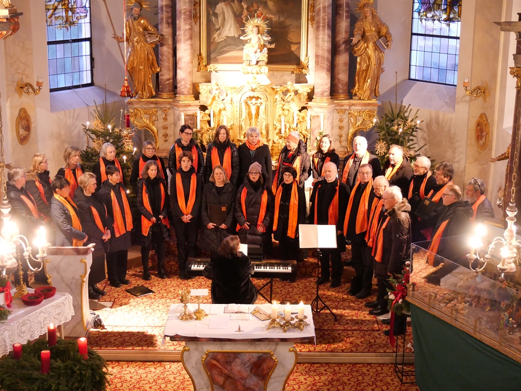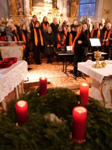 Auch im Jahr 2025 beendeten wir das Chorjahr mit einer feierlichen Adventmesse: Am Sonntag, den 21. Dezember gestalteten wir (vollzählig!!!) um 9.30 Uhr in der Pfarrkirche Obsteig die Messe, die diesmal von Pater Rolli zelebriert wurde, begleitet wurden wir wieder in bewährter Weise am Klavier von Albert Knapp. In der Pause zwischen Einsingen und Messe durften wir wieder bei Luise und Toni Riser einkehren und uns beim Tee und Gebäck aufwärmen. Danach ließen wir den Vormittag in guter Tradition im Gasthof Stern ausklingen und freuen uns auf viele weitere singfreudig musikalische Zusammenkünfte und Auftritte im Jahr 2026!