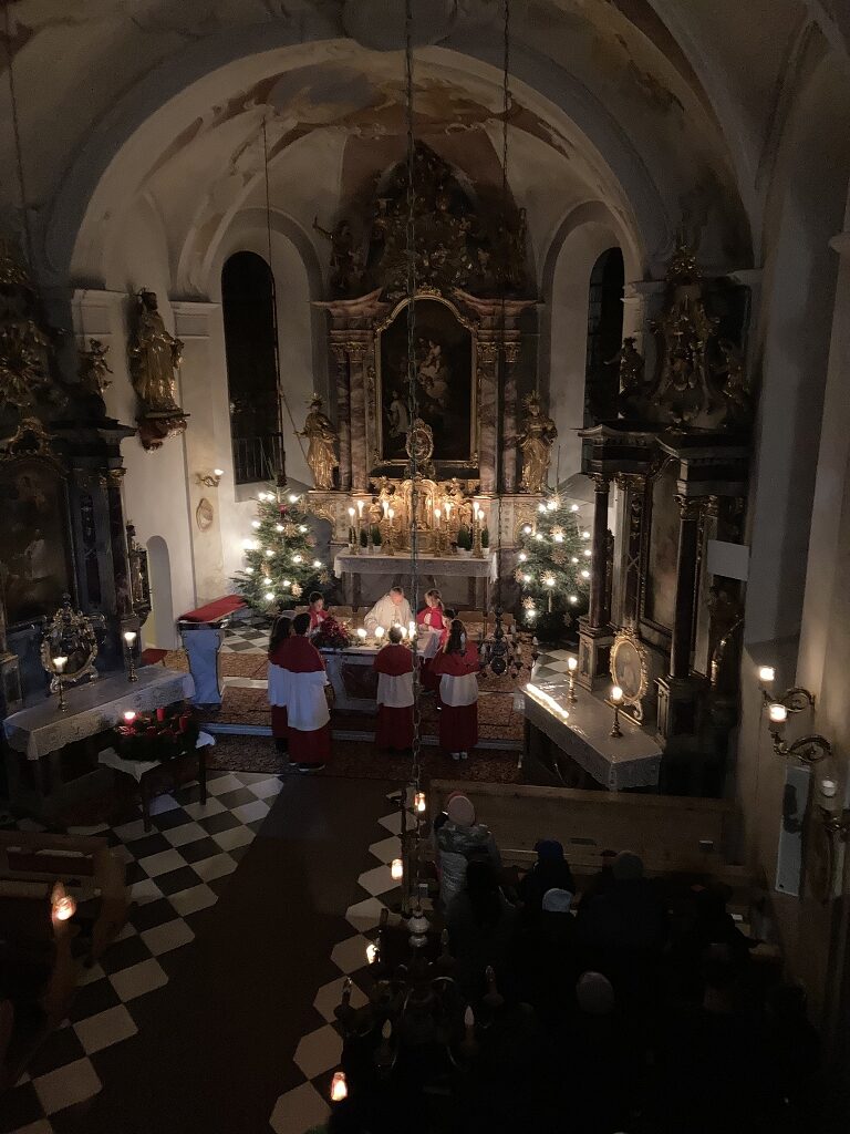 Die erste Rorate im Advent wird schon seit vielen Jahren traditionell vom Chor Stimmquadrat gestaltet. So erklommen wir wieder etwas verschlafen die Empore in der Pfarrkirche Obsteig und freuten uns über viele KirchenbesucherInnen, die ebenfalls von der frühen Morgenstunde nicht abgeschreckt wurden. Deshalb war auch das Frühstück im Widum, zu dem die Pfarre Obsteig einlud, anschließend sehr gut besucht und leider nicht für alle zu haben.